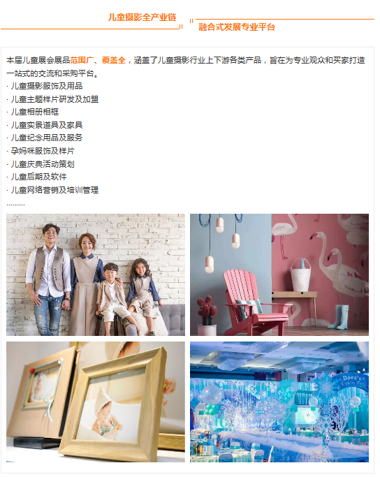 同期活動精彩紛呈,其中包含了孕嬰童攝影產(chǎn)業(yè)交流會、兒童攝影優(yōu)秀攝影作品展示、上海國際兒童時(shí)裝秀、兒童攝影展前研討會、時(shí)尚新品發(fā)布會等,多重課程為您網(wǎng)羅知識點(diǎn),全方面解讀兒童攝影行業(yè)發(fā)展趨勢。
