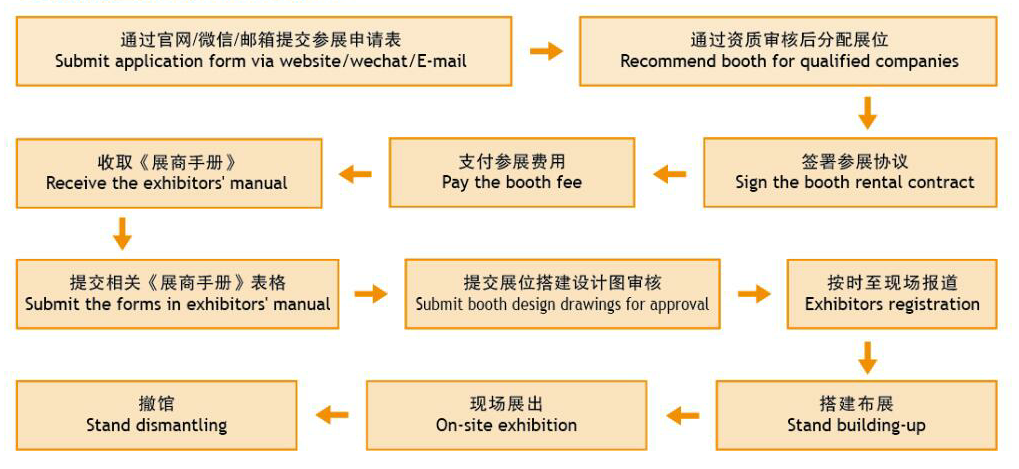7) 按照《展商手冊(cè)》中涉及的內(nèi)容準(zhǔn)時(shí)提交各種表格。涉及展商資料、展會(huì)搭建、展品運(yùn)輸、酒店預(yù)訂等各項(xiàng)展會(huì)相關(guān)規(guī)則和服務(wù)工作,以及展商的參展特殊要求,參展企業(yè)可向主辦單位咨詢。
